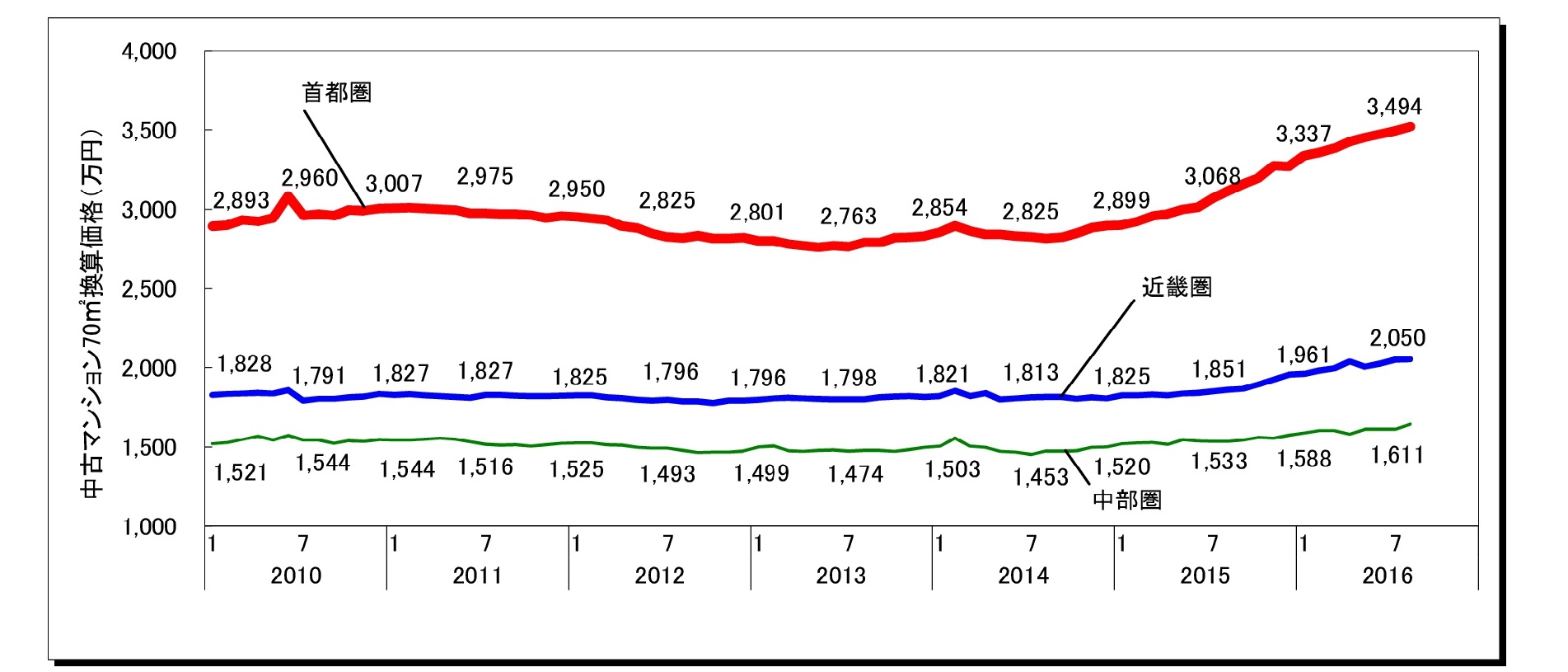 Property prices in Tokyo area(Red Line) are rising due to the interest rate policy of Bank of Japan.